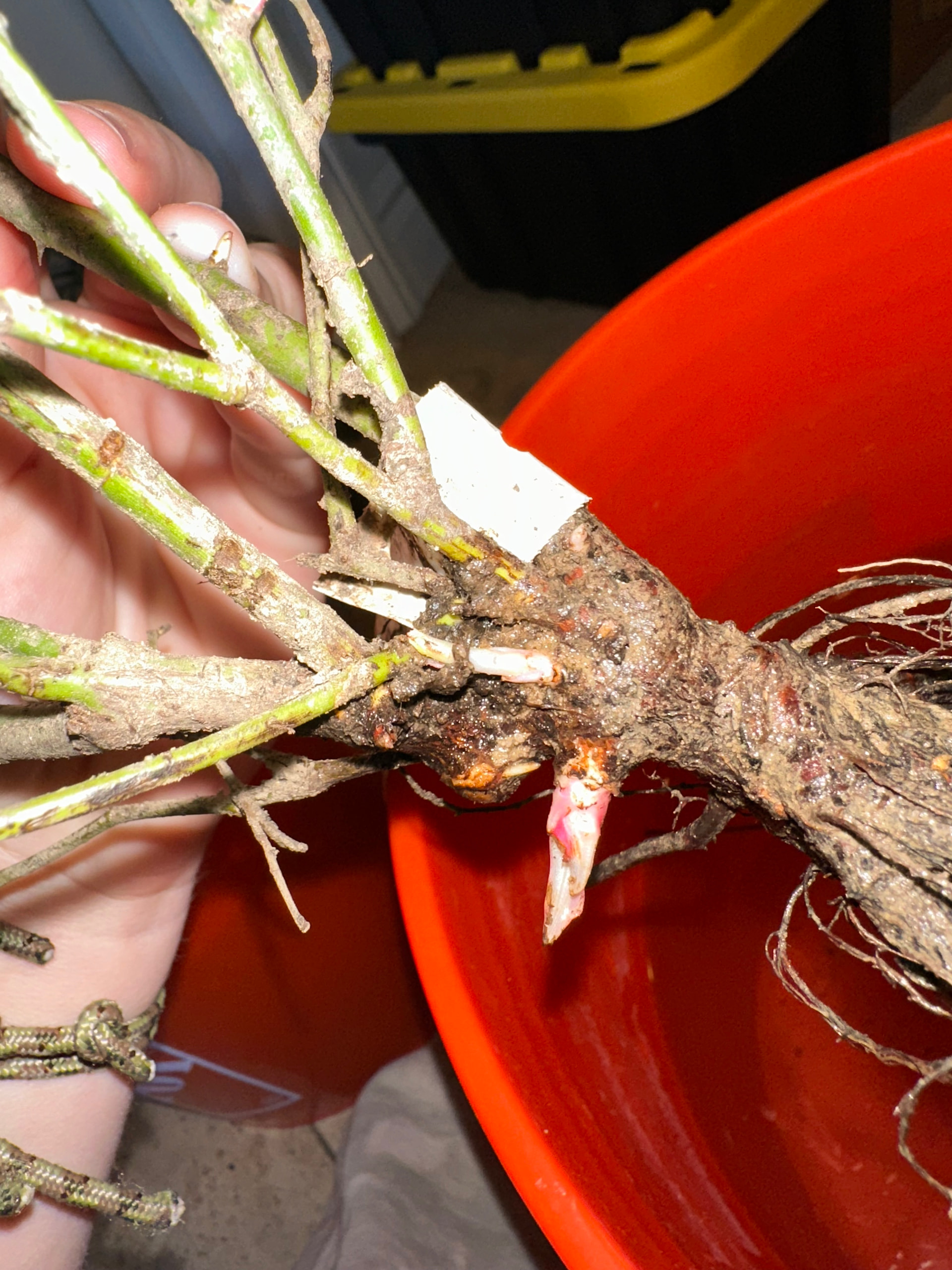 I bought a few bare root roses and one possibly has crown gall. It has some bumps growing around where it looks like a branch was cut off. I was thinking maybe it could be a callus, but I’m not sure.