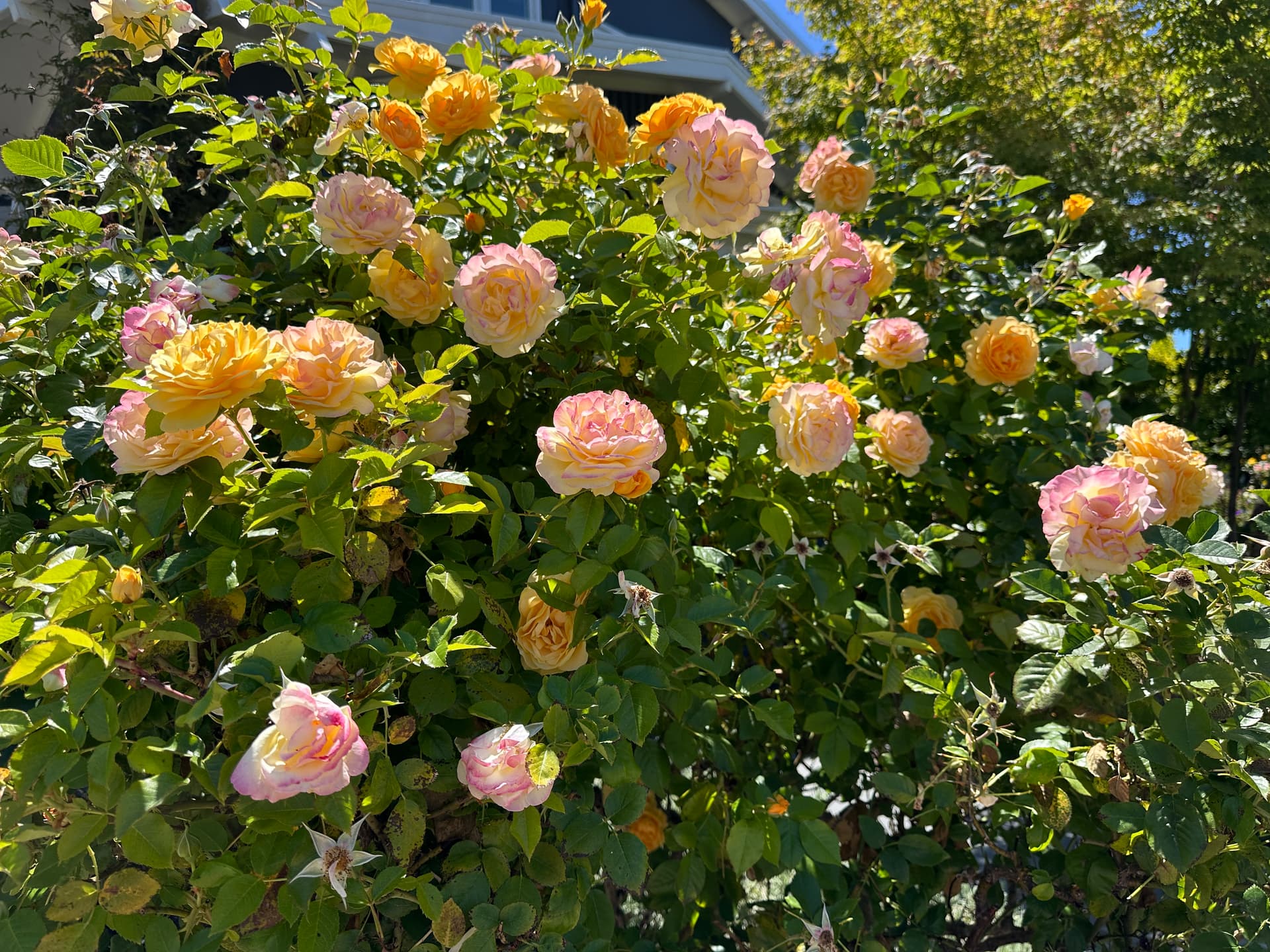 I am I love with a rose bush that keeps blooming and I want to buy one for my home but don’t know what it is. It resides in Berkeley, California and has had 2 full flushes of blooms so far this summer. It’s about 4 ft tall maybe 5ft tops.